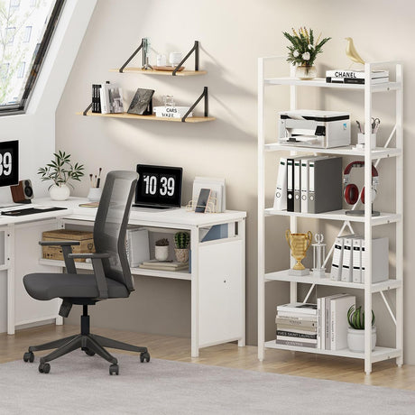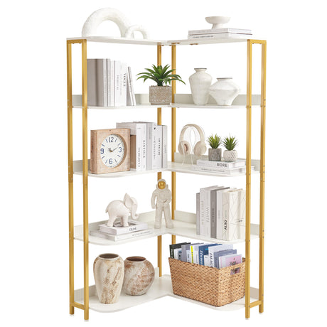 White L-Shaped Bookshelf, Modern Corner Bookshelf 5-Shelf Corner Bookcase