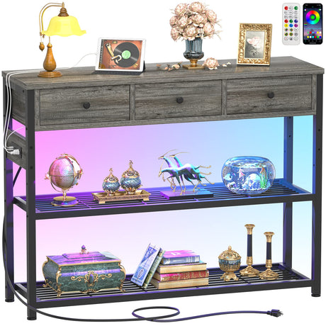 Console Table for Entryway with Power Strip, Entryway Table with RGB LED Lights