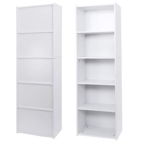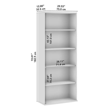 Hustle Tall 5 Shelf Bookcase in White, Large Freestanding Bookshelf for Home Office