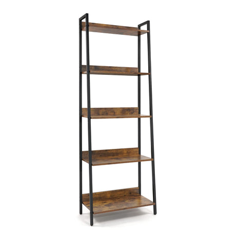 5 Tier Ladder Bookshelf, 24 Inch Width Free Standing Shelf, Bookcase Shelf Storage Rack