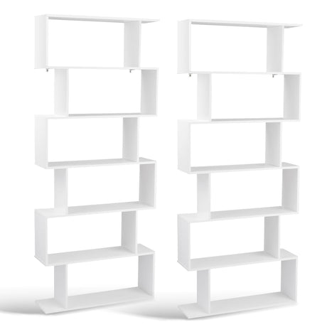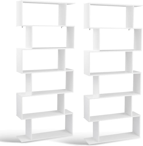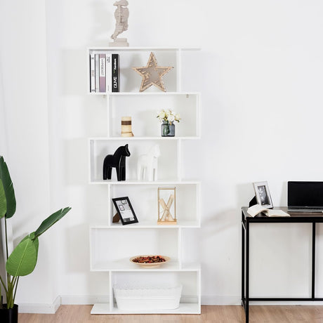 6 Tier Tall Narrow Bookcase, Modern White Corner Bookcase with Doors Storage