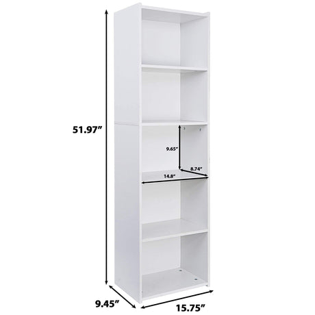 5-Shelf Bookcase, 23.5''L x 9.5''W x 67''H, Multi-Functional Wood Storage Display Open Bookshelf