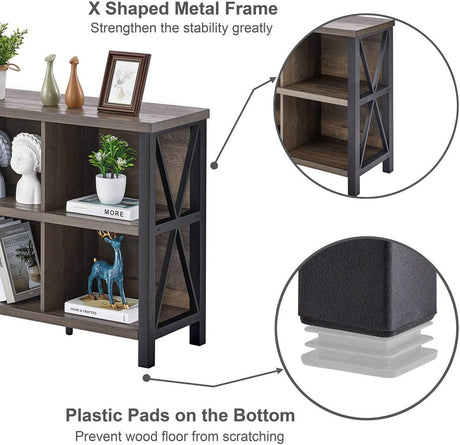 6 Cube Bookcase, 3-Tier 47" Long Wood Bookshelf w/ 5 Metal Legs, Adjustable Shelf