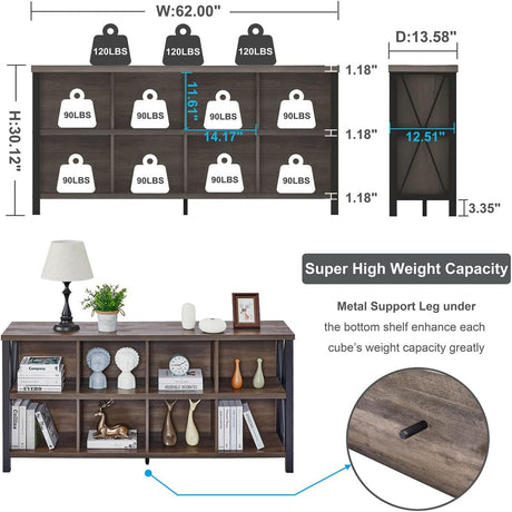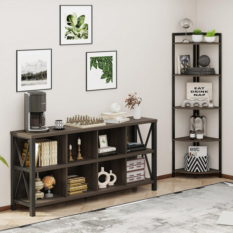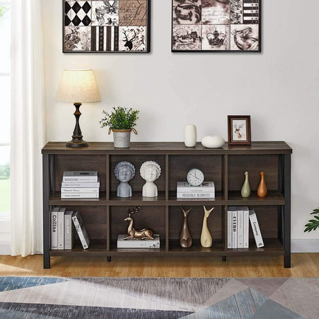 8 Cube Storage Organizer Bookshelf, Rustic Wood Cubby Bookcase