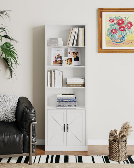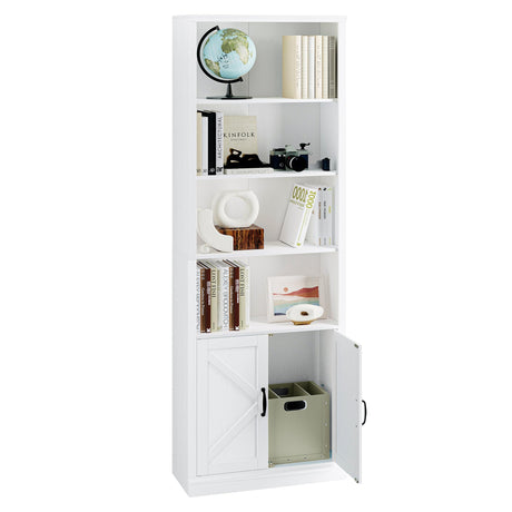 5 Tier Bookshelf Bookcase with Cabinet Doors, 70 in Tall Wooden Bookshelves