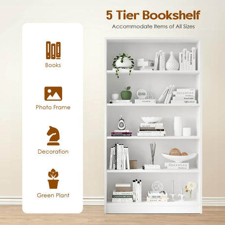 Soohow 5 Shelf Bookcase,60 Inch Wood Tall Bookshelves for Living Room,White