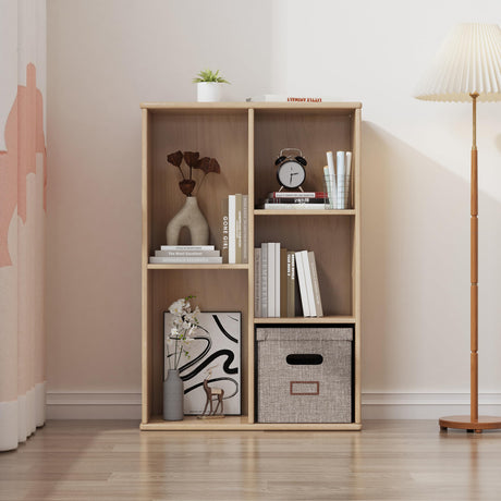 2-Tier Montessori Solid Wood Shelves Toy Organizers and Storage,5-Compartment Storage Cabinet