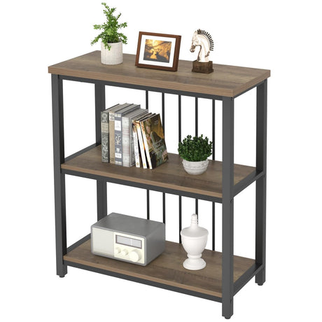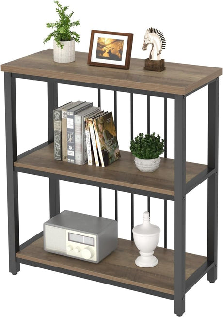 Small Bookshelf and Bookcase, 3 Tier Open Book Shelf, Modern Metal and Wood Shelving