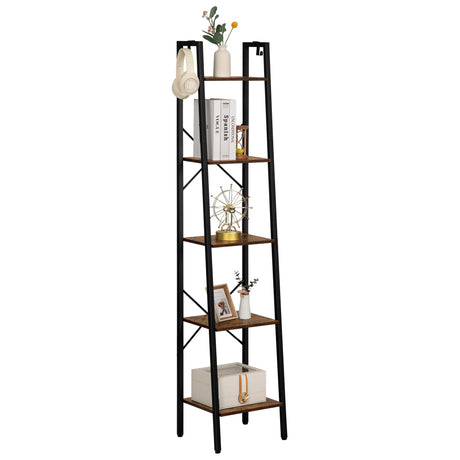 Bookshelf, 5-Tier Narrow Bookcase, Ladder Shelf for Home Office, Living Room, Bedroom