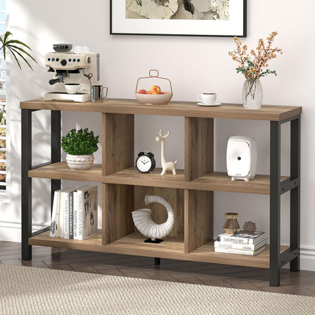 6-Tier Bookshelf, Tall S-Shaped Geometric Bookcase, Industrial Freestanding Display Shelf