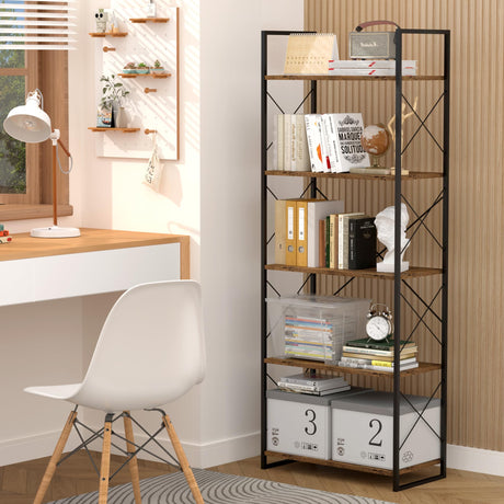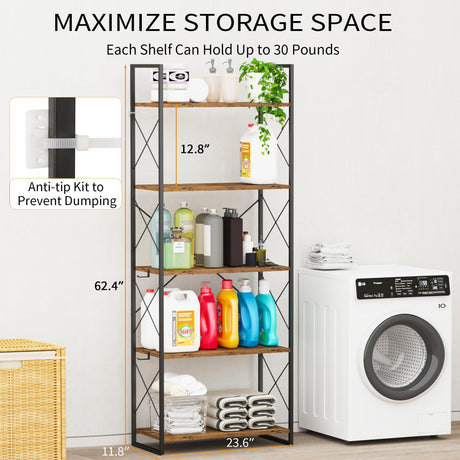 5 Tier Bookshelf - Tall Book Shelf Modern Bookcase for CDs/Movies/Books, Rustic Book