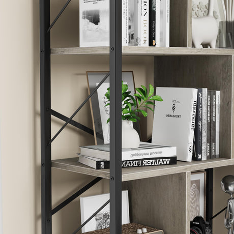 5 Tier Bookshelf with Storage, 61 Inch Tall Industrial Book Shelf with Open Display Bookshelves
