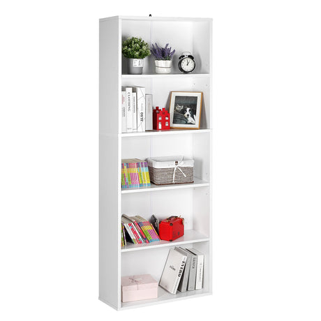 5 Shelf Wood Bookcase Freestanding Display Shelf Adjustable Layers Bookshelf for Home