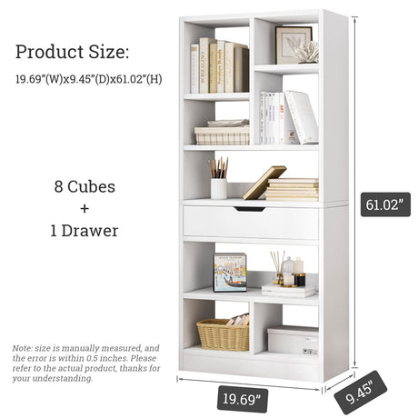 Wooden Open Shelf Bookcase - 61" Height Free Standing Display Storage Cabinet Organizer