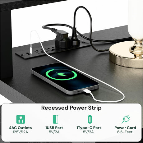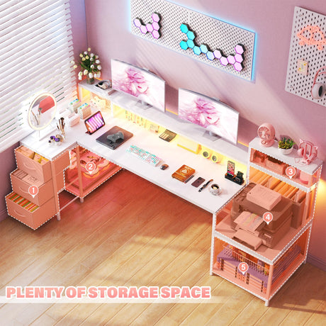 L Shaped Computer Desk 66" with Power Outlet & Storage Shelves