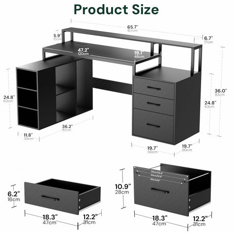 L Shaped Desk with 5 File Drawers, 66" Reversible L Shaped Computer Desk