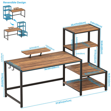 Office Desk 58 inch with Printer Shelf, Reversible Computer Desk with Movable Monitor