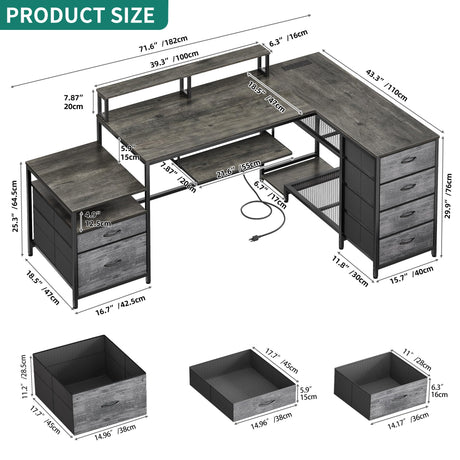 L Shaped Desk with Drawers, 71" Computer Desk with Power Outlet &