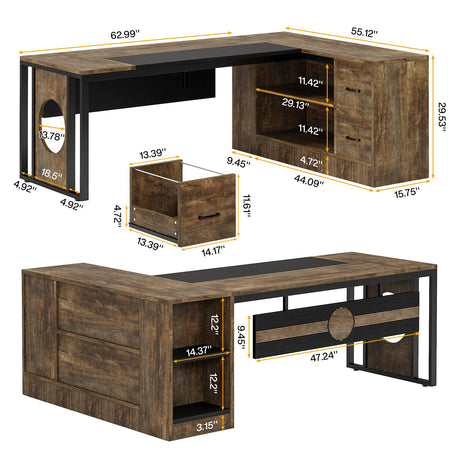 L Shaped Desk with 55-Inch Storage Cabinet, Extra Large Executive Office