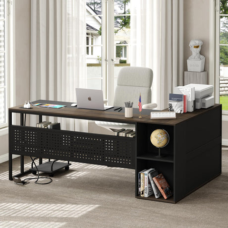 71 inch Executive Desk, L Shaped Desk with Cabinet Storage, Executive Office