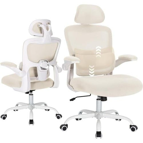 Mesh Office Chair with 3D Adjustable Lumbar Support, High Back Desk Chair with Flip-up
