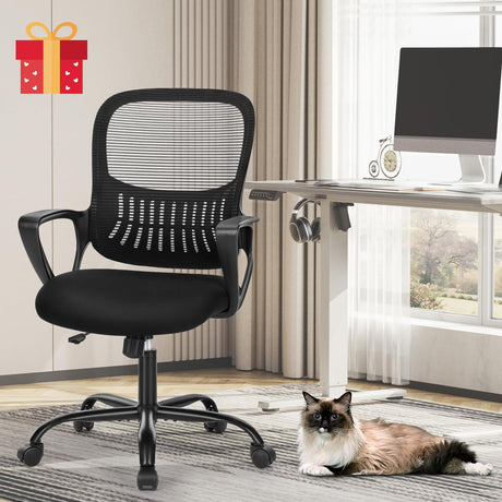 Home Office Computer Desk Chairs Mid Back, Rolling Swivel with Lumbar Support and Armrests