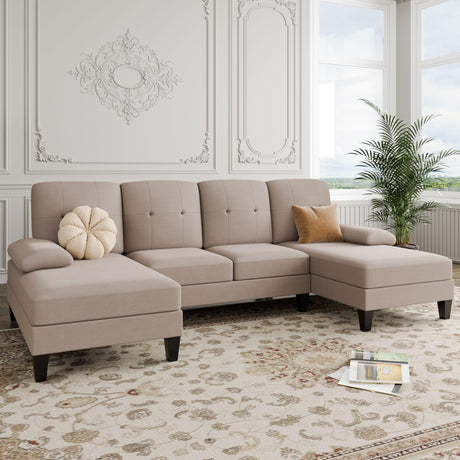 Sectional Sofa Couch, U-Shaped Sofa Couch with Double Chaise, 4-Seat Sleeper Sofa