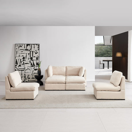 Contemporary Deluxe Comfort Modular Sectional, Soft Linen Textured Fabric