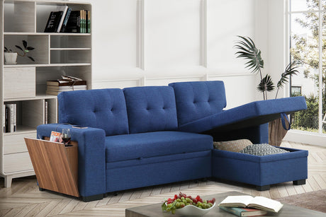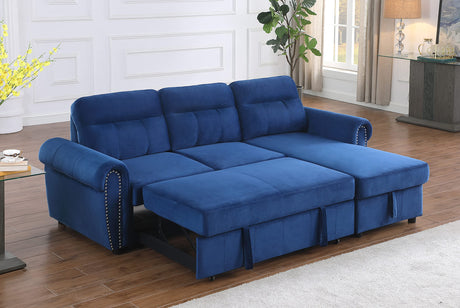 Ashton Blue Velvet Fabric Reversible Sleeper Sectional Sofa Chaise