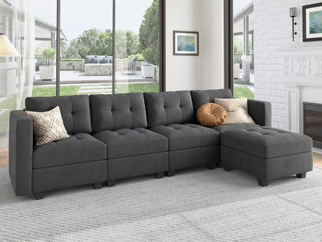 Modular Sectional Sofa with Storage Seat Convertible L Shaped Couch with Chaise Velvet 4 Seater Sofa