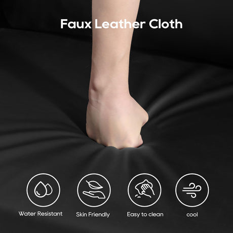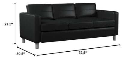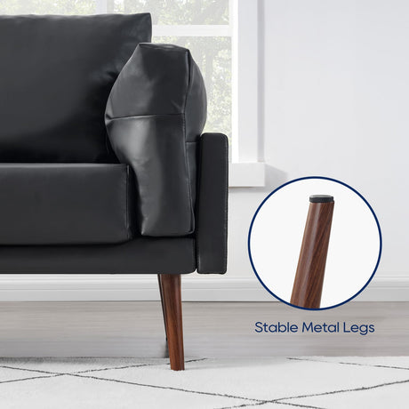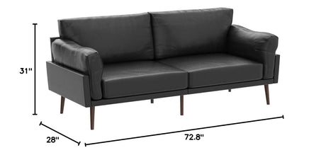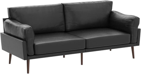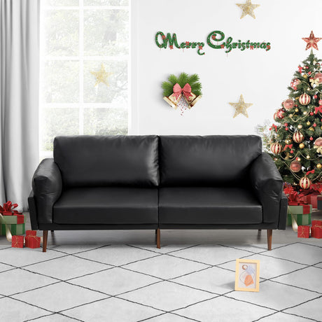 Black Upholstered Sofa, Faux Leather Sofa Couch, 72 Inch Black Couch for Living Room
