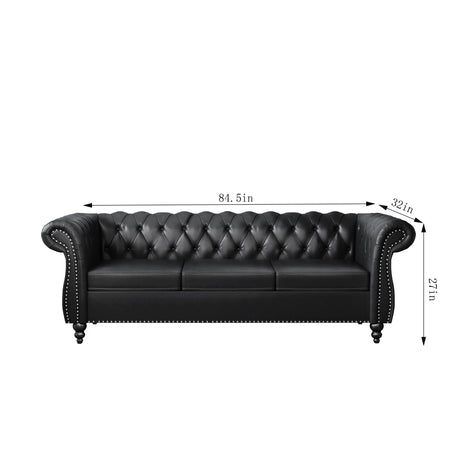 Modern 3 Seater Couch, Large Sofa Furniture, Roll Arm Classic Tufted Chesterfield Settee
