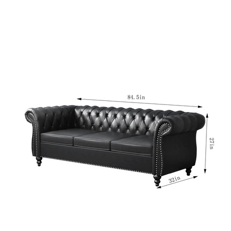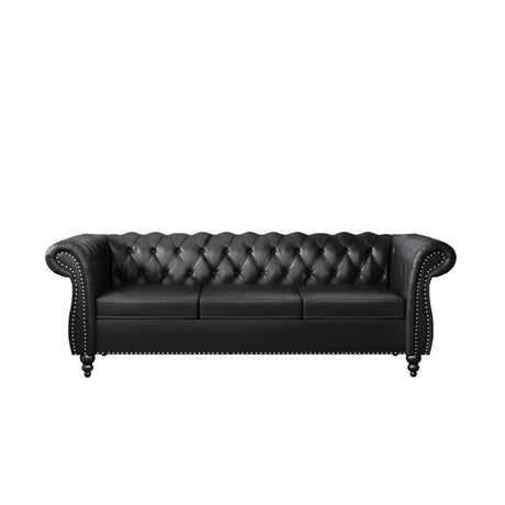 Chesterfield PU Leather Sofa, Upholstered PU Sofa with Tufted Back