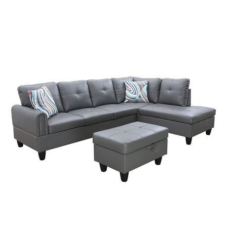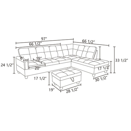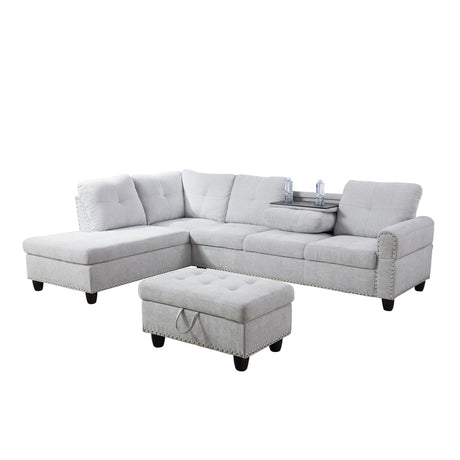 3-Piece L Shape Sectional Sofa, with Right Chaise, Storage Ottoman