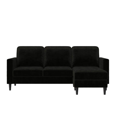 CosmoLiving Strummer Reversible Sectional Couch, Black Velvet Sofa (DA038-BK)