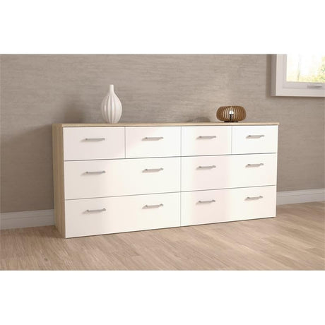 6 Drawer Dresser, Modern White Double Dresser, Wide Chest of Drawers with Metal
