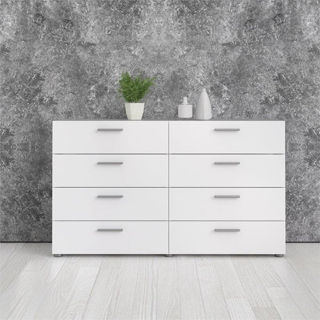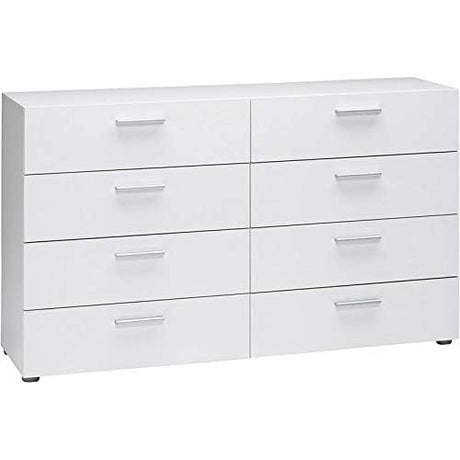 Contemporary 8 Drawer Double Bedroom Dresser in White with Modern Silver