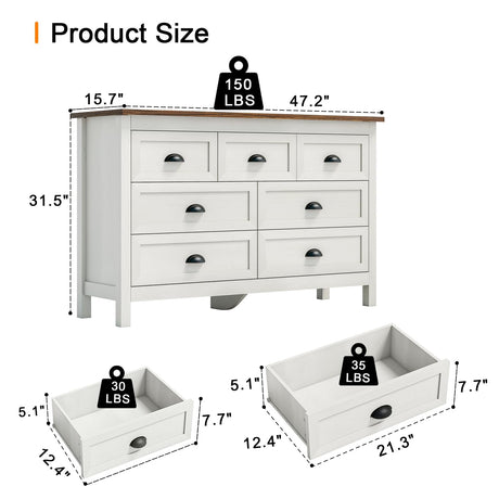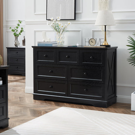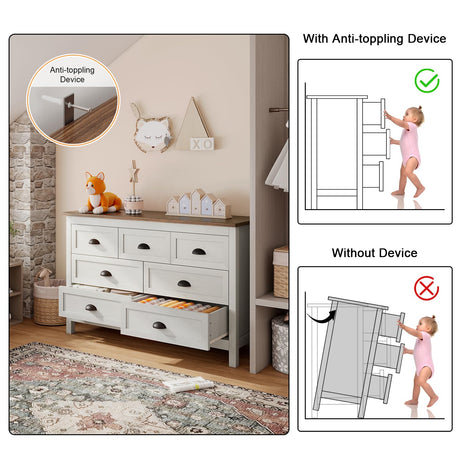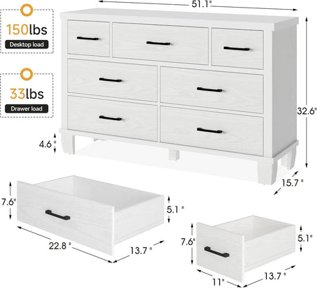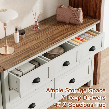 Farmhouse 7 Drawer Dresser, 52" Wide Chest of Drawers for Bedroom