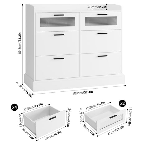 6 Drawers Dresser for Bedroom, White Modern Chest of Drawers