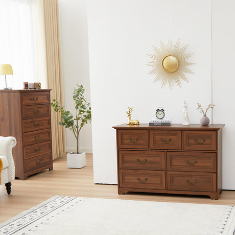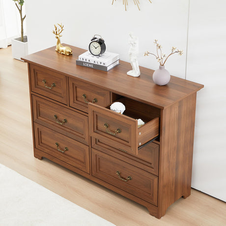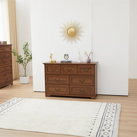 7 Drawers Dresser,47.2” Wide Wood Chest of Drawer,Retro Dresser with Metal Handle