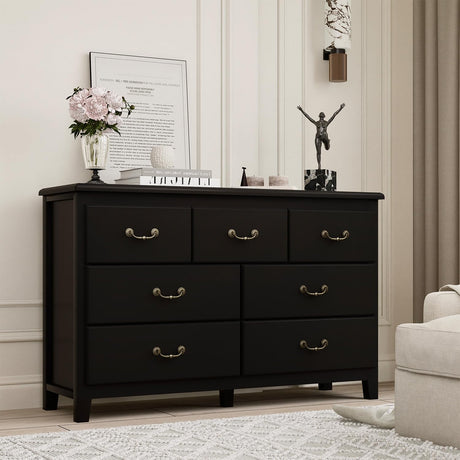 Farmhouse 7 Drawers Dresser, Dressers for Bedroom, 54" Wide Wood Rustic