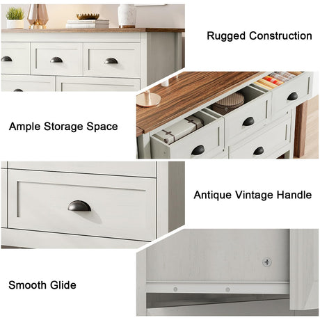 Farmhouse White Dresser for Bedroom, Vintage 7 Drawer Dresser & Chest