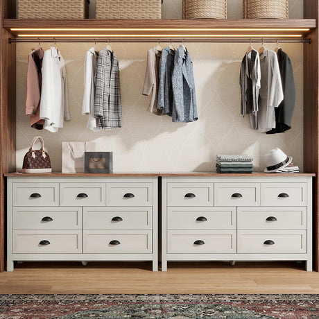Dresser for Bedroom, 6 Drawer Wide Dresser Organizer with Charging Station
