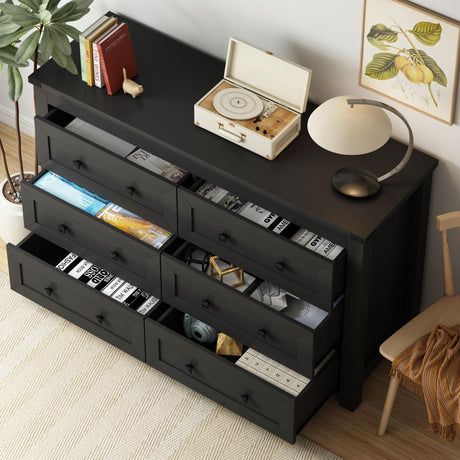 Black 6 Drawers Dresser for Bedroom,Wood Storage Chest of Drawers