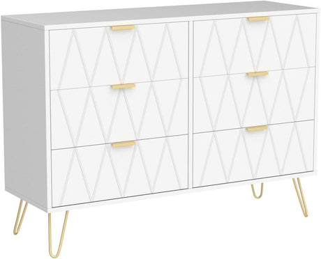 White Dresser for Bedroom, Modern 6 Drawer Dresser for Living Room