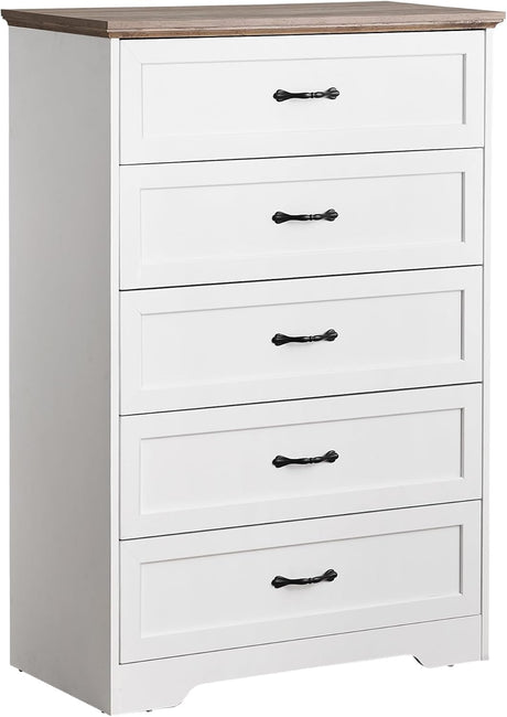 Dresser with 5 Drawers White Modern Chest of Drawers Large Capacity Storage Wood
