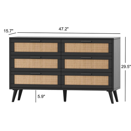 6 Drawer Dresser,47.3" Mid Century Modern Dresser for Bedroom,Large Wooden Dresser