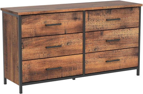 6 Drawer Double Dresser, Industrial Wood Storage Dresser Clothes Organizer with Sturdy