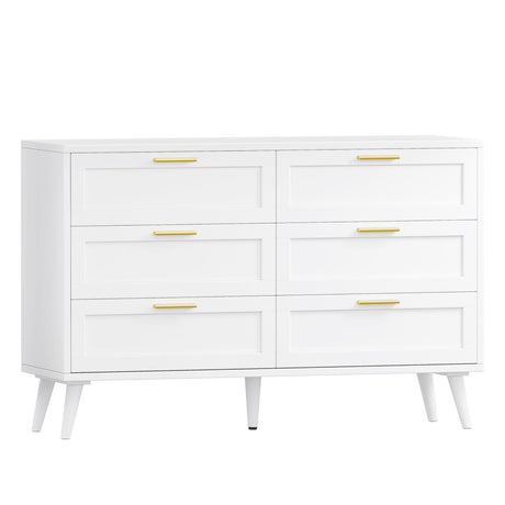 6 Drawer Double Dresser for Bedroom, Chest of Dressers, Modern Wooden Dresser Chest