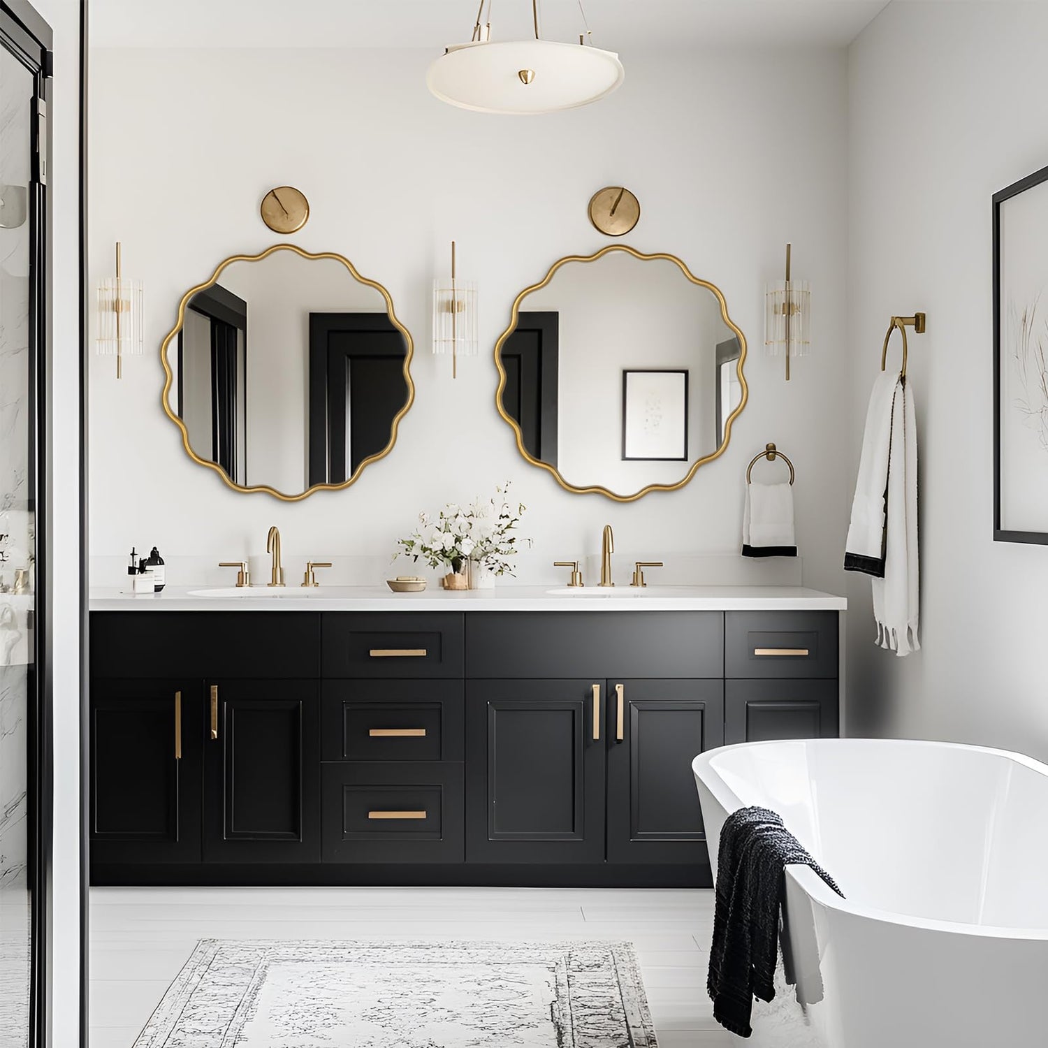 Elevate your space with this stunning 22-inch round wavy mirror, featuring a sophisticated modern design with elegant gold finish. The distinctive wavy edge creates visual interest and adds a touch of contemporary luxury to any room.